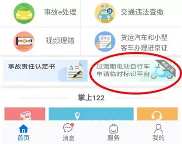 “北京交警”APP>过渡期电动自行车申请临时标识工作平台